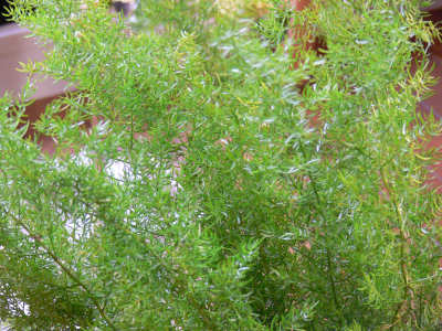 形状は確かにアスパラミリオンと同じだけど、葉っぱにつやがあって小さな小さなトゲがあります。