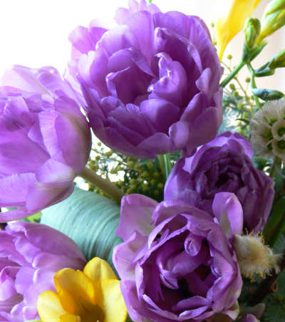 チューリップは日ごとに伸びたり向きが真っ直ぐになったりして、アレンジに入れるには少々難しい面もあります。